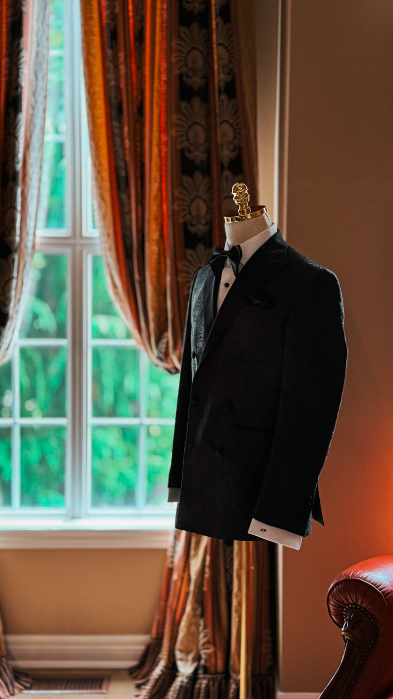 Finding your wedding suit should feel like stepping into a moment, not just an appointment. The Debonair Wedding Experience begins with a private consultation that goes beyond measurements—it’s an exploration of who he is and the story you’re creating together. From the first glass of champagne to the final fitting, every step is designed to feel personal, seamless, and worthy of the day you’ll remember forever.