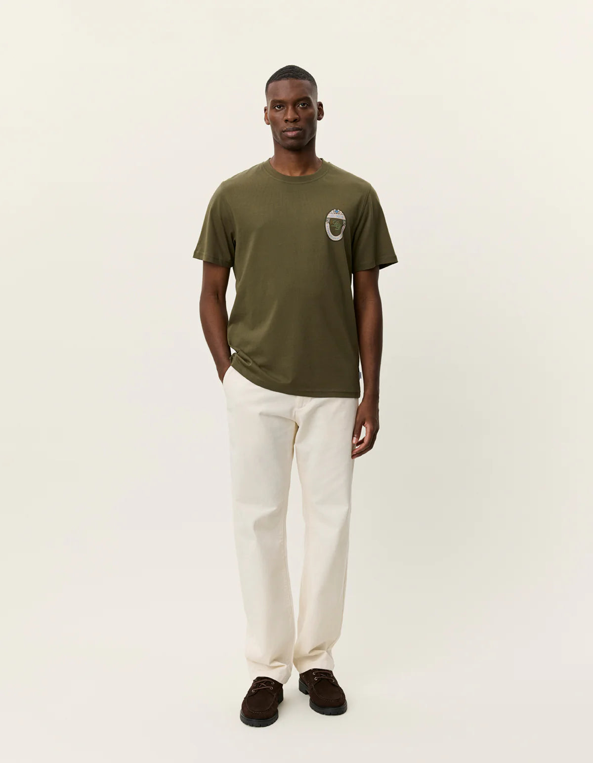 A simple graphic tee crafted in soft organic cotton. Finished with a small flower emblem print at the chest for a ref...