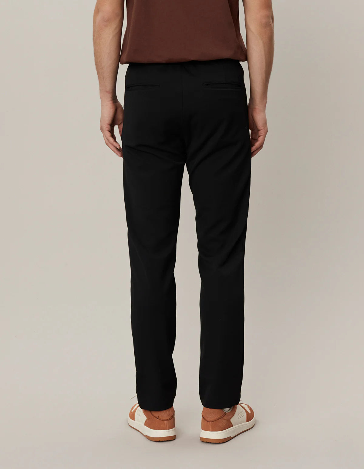 A suit/sweat hybrid: the comfort of a stretchy drawstring waist with the sharp cut and fabric of suit pants.